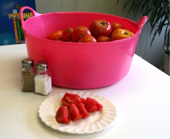 Ted, our friendly office handyman/tech guy made a trip to Leamington, Ontario last week and brought us back some delicious Ontario grown tomatoes. Leamington is known as the tomato capital of Canada, and for good reason.