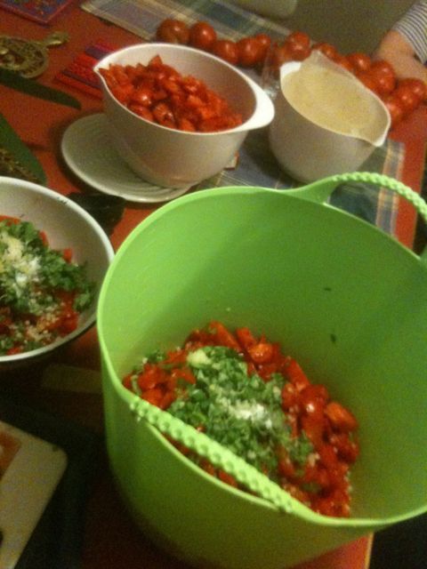 While making our third batch of sauce we finally ran out of pots. Mini-Carrie came to the rescue storing chopped tomatos and basil pre-cooking. Yum. The Carries and Phils are non-toxic and food safe, so cook away!
