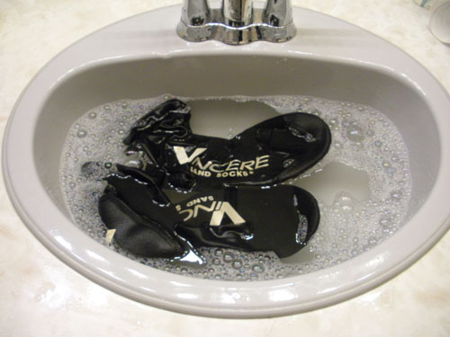 The following photos were sent to me from my ecstatic male friend who washed his sand socks with great success, and is now searching around his house for other fun things that he can soak.