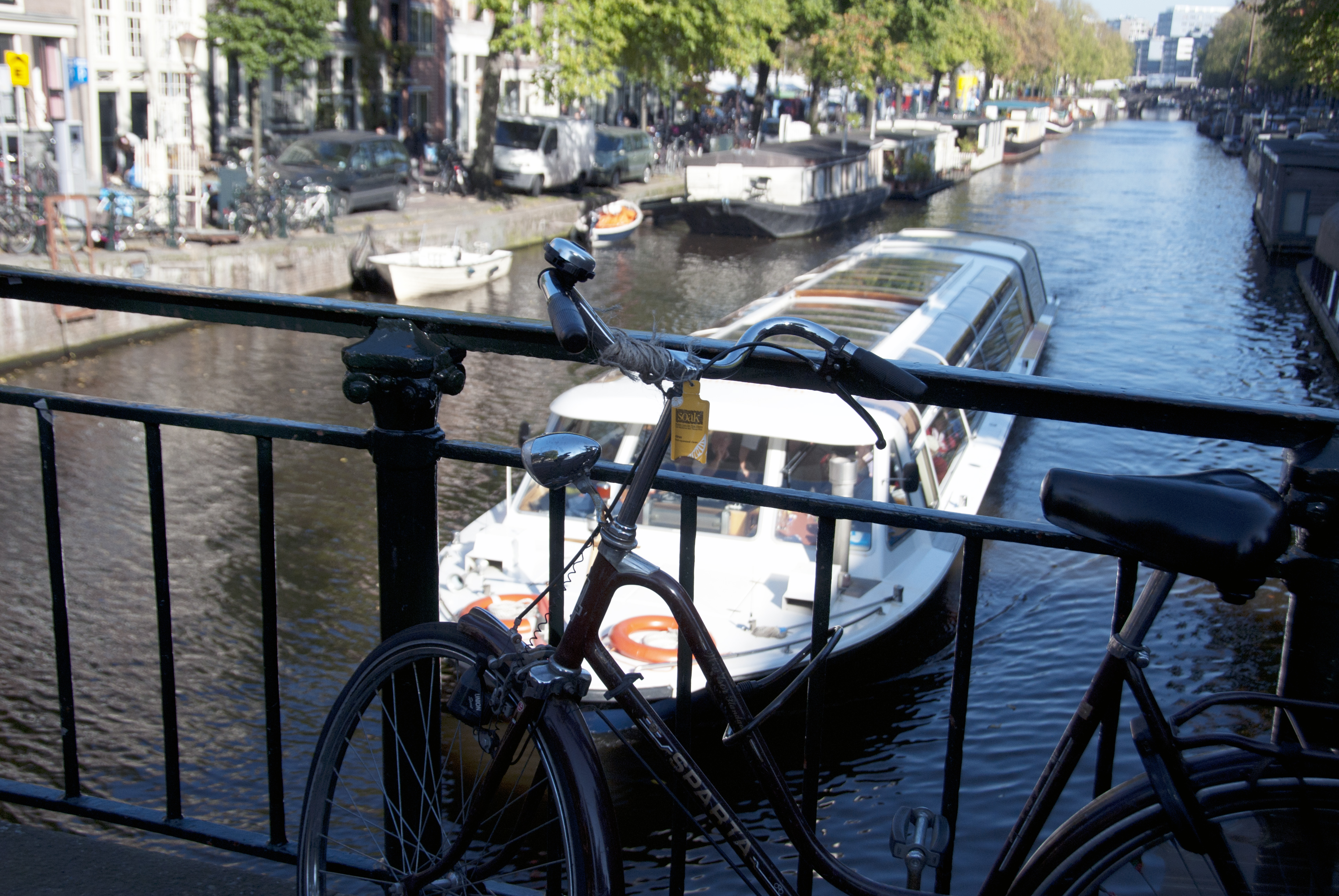 Citrus strapped to a bicycle on a Canal in Amsterdam.