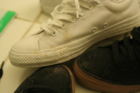 White shoes are a good idea in theory. When you try them on at the store, they’re beautiful and clean and look very smart. Now you can do everything in your power to tip toe around puddles, and not walk in dirt, but it’s inevitable. White shoes attract stains.